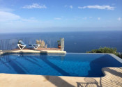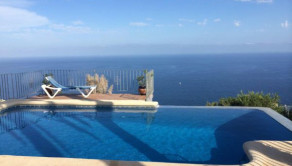 Villa on the first line of the cliff!! It has four bedrooms and four bathrooms, three of them en suite, living room with fireplace, dining room, and fully equipped kitchen. The terrace is very large and has a covered porch with magnificent direct views on the sea.