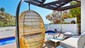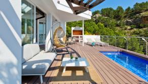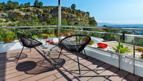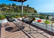 A residential estate full of light, with large interior spaces, unique architecture and natural surroundings, panoramic views of the Mediterranean Sea and the skyline of Benidorm.