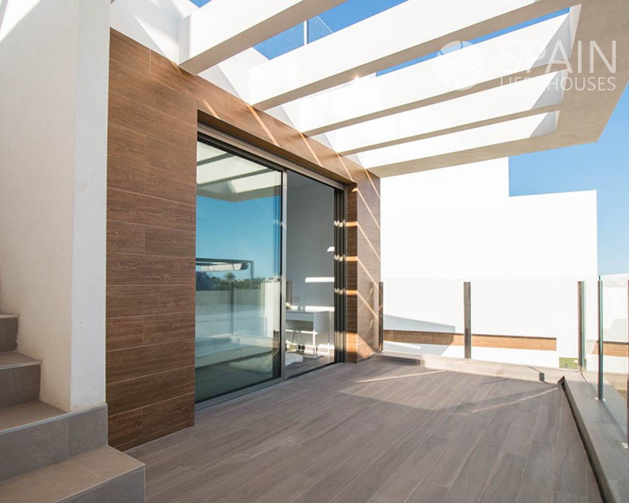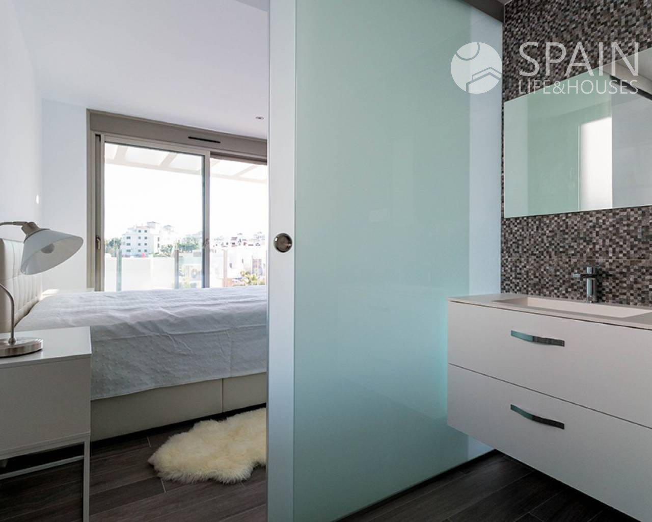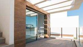 The house has 218 m2 of plot and 101 m2 built. The villa is distributed on two floors: The second floor has a large living-dining room, equipped kitchen, a bedroom, a bathroom and a large terrace of 30 m2 with the large private pool of 3 x 6 meters. Going up the stairs we find the second floor which makes the most of its space with its two en-suite bedrooms, large closets and a large terrace with direct access from one of the bedrooms. If we continue up the stairs we can appreciate the cozy outdoor solarium area of 40 m2 to enjoy family gatherings and the Mediterranean sun every day of the year. The basement of this villa is optional.